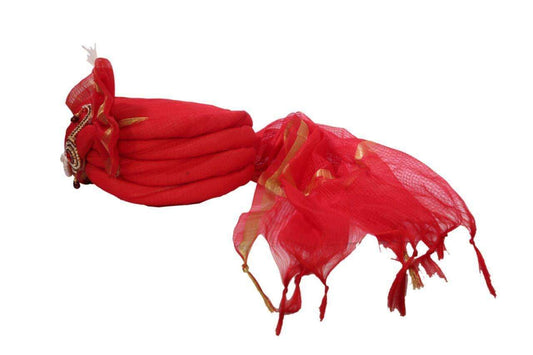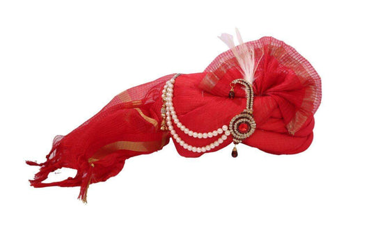 A Classic Red Turban with paisley broach, Maharaja, Bollywood, Fancy dress SGT 011