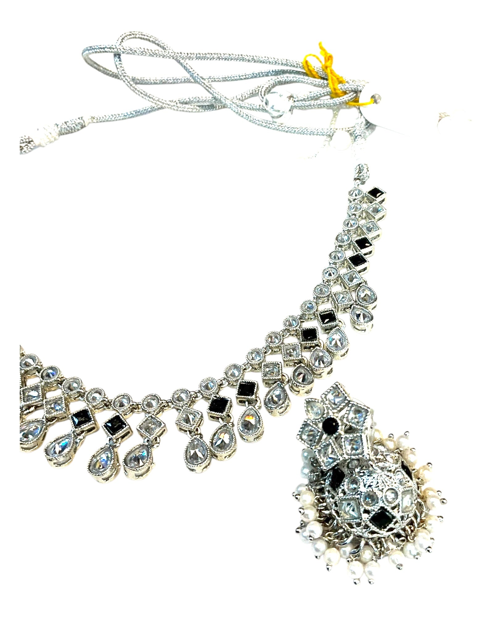 Black - Medium Size Silver Finish Necklace Set with Earrings - SJ06 08H25