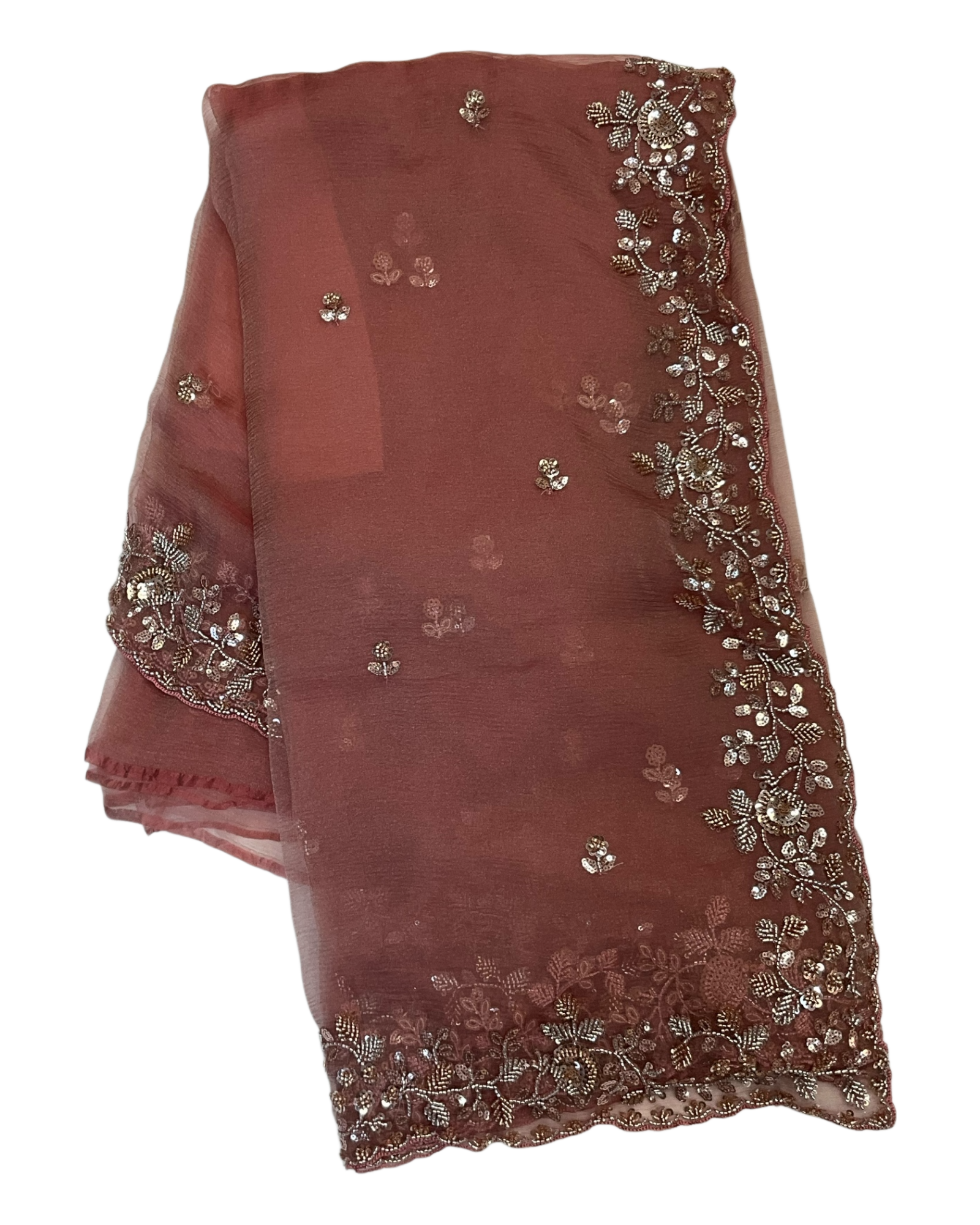 Coral - Rich Saree with Bead Embroidery and Blouse Piece - UK stock - 24hr Dispatch - RS2523 TH