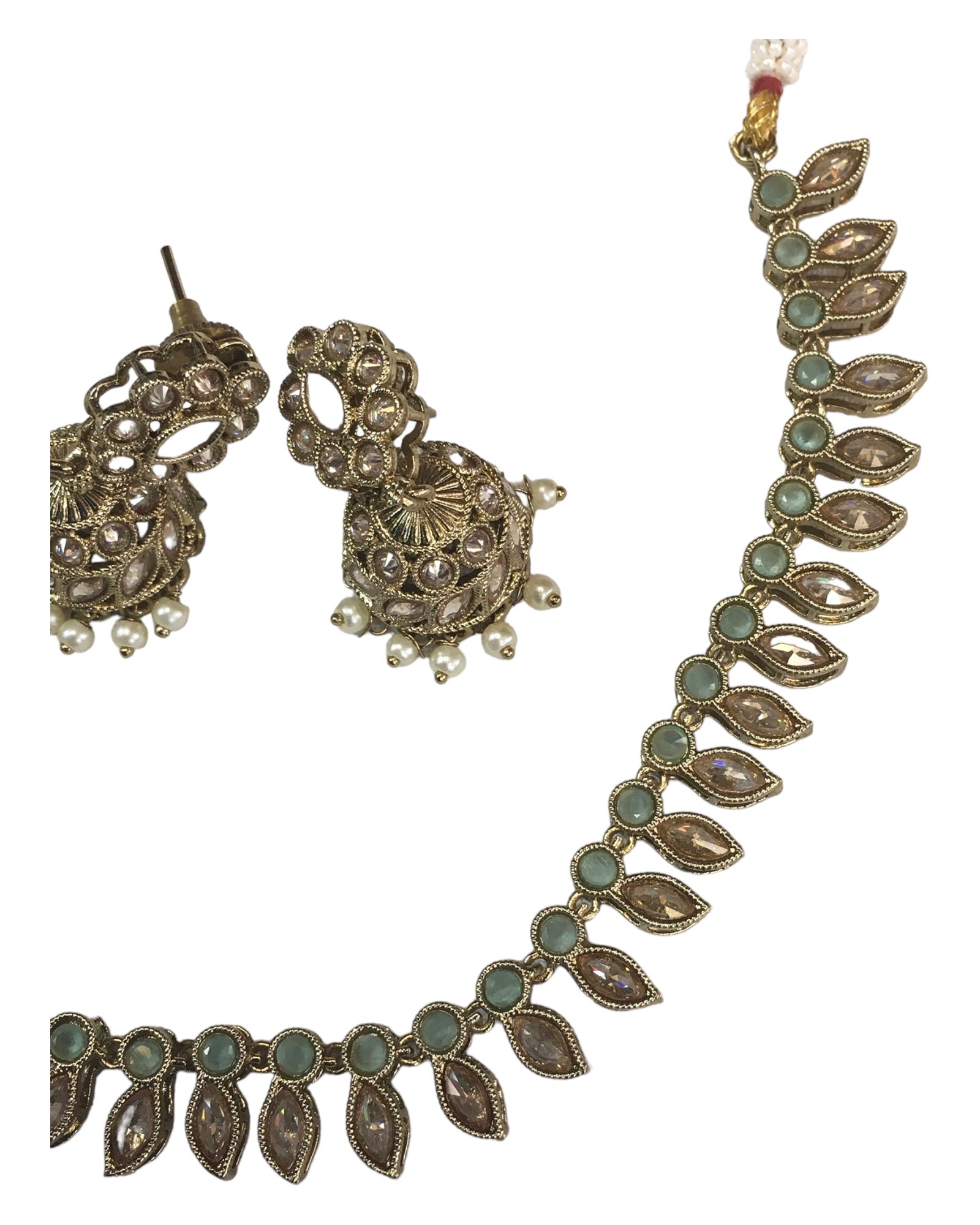 Mint Green - Small - Antique Gold Finish Necklace Set with Earrings - AE2402 C 0724