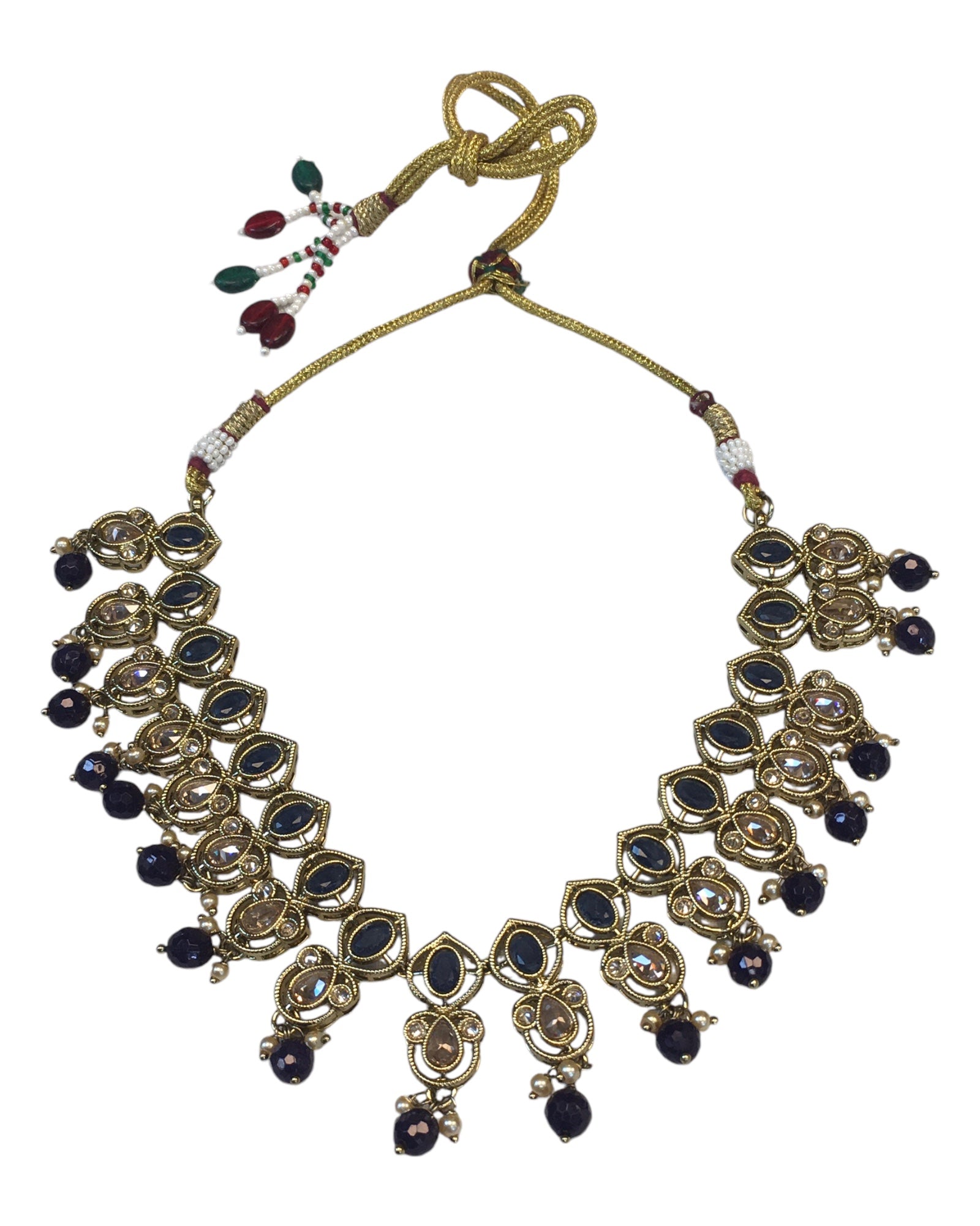 Navy Blue - Large Size Antique Gold Finish Necklace Set with Earrings - AV7787 11KK24