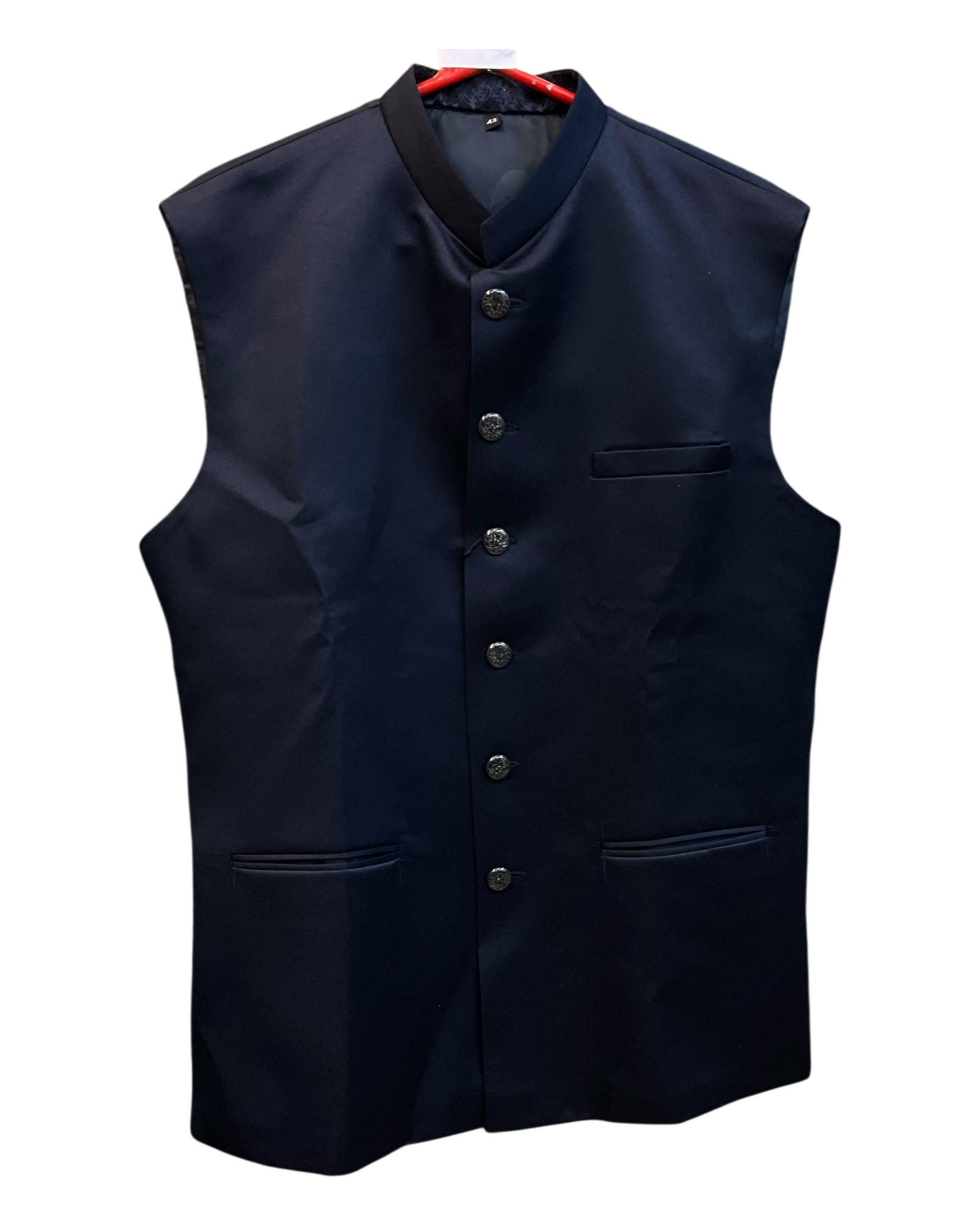 Navy Blue - PREMIUM Slim Fit Mens BandhGala / Prince / Chinese Collar Open Jacket with inside Waistcoat- Fantastic Fit - 01JT26 CS2601