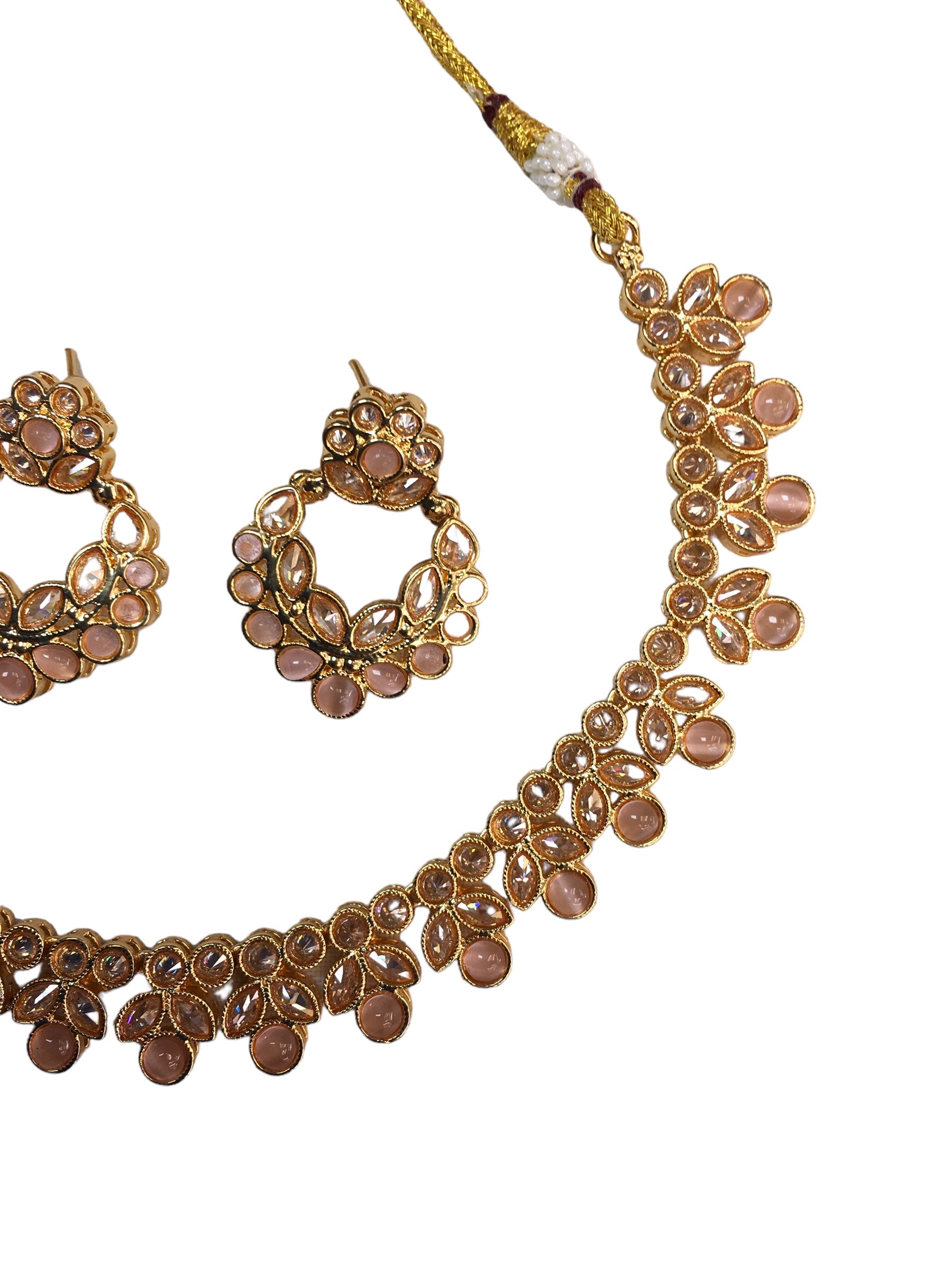 Pink - Medium Size Gold Finish Necklace Set with Earrings - TOH2402  Cp 0424