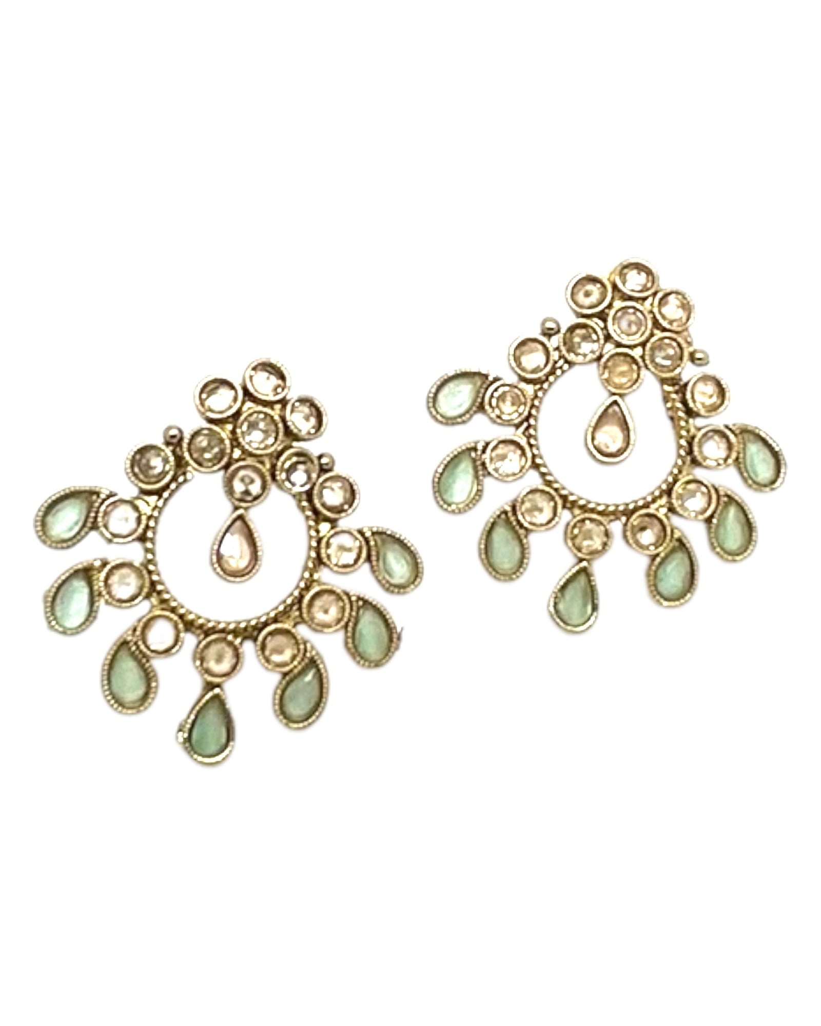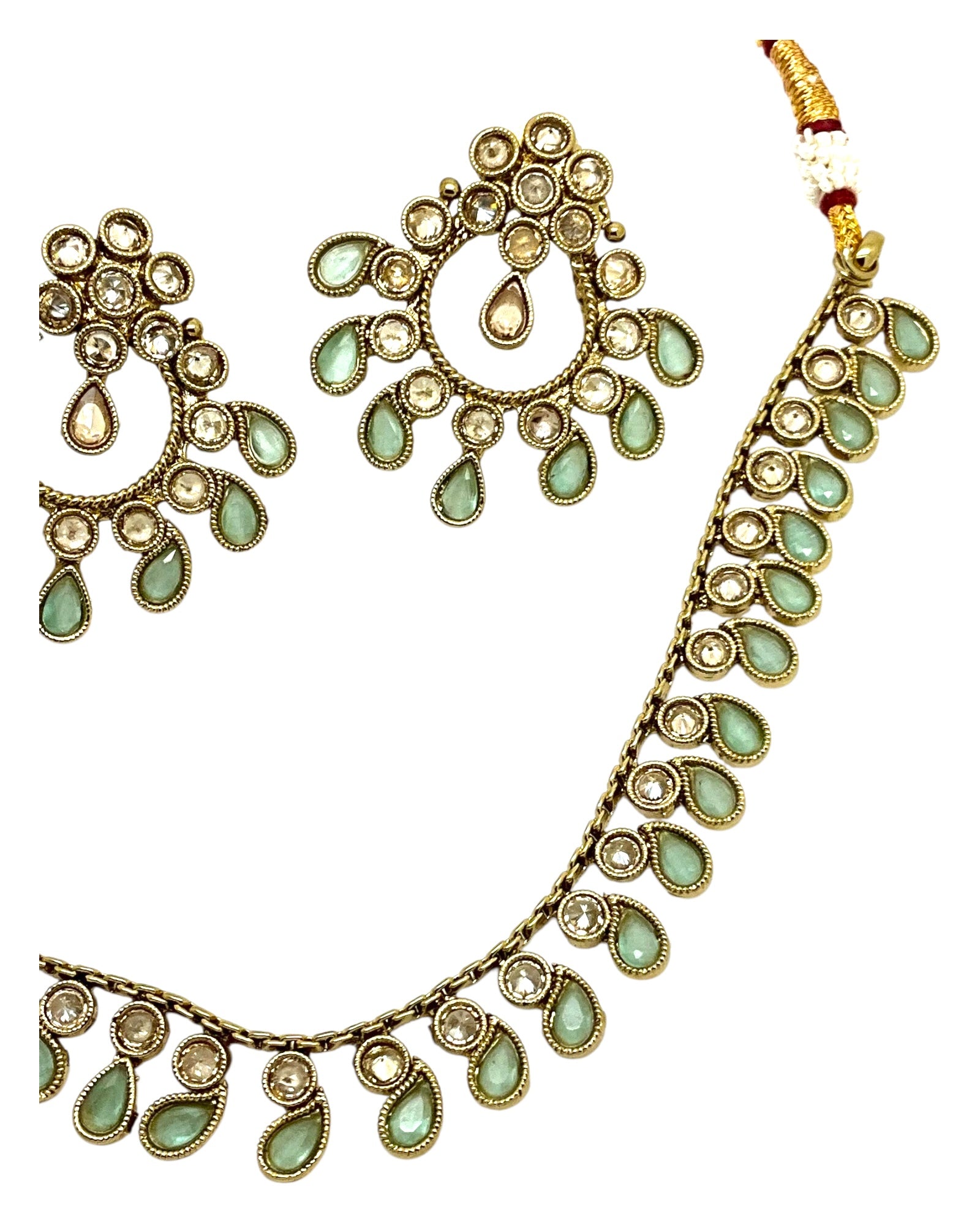 Sea Green - Small Size Antique Gold Finish Necklace Set with Earrings - Bollywood - AE2519 08C25