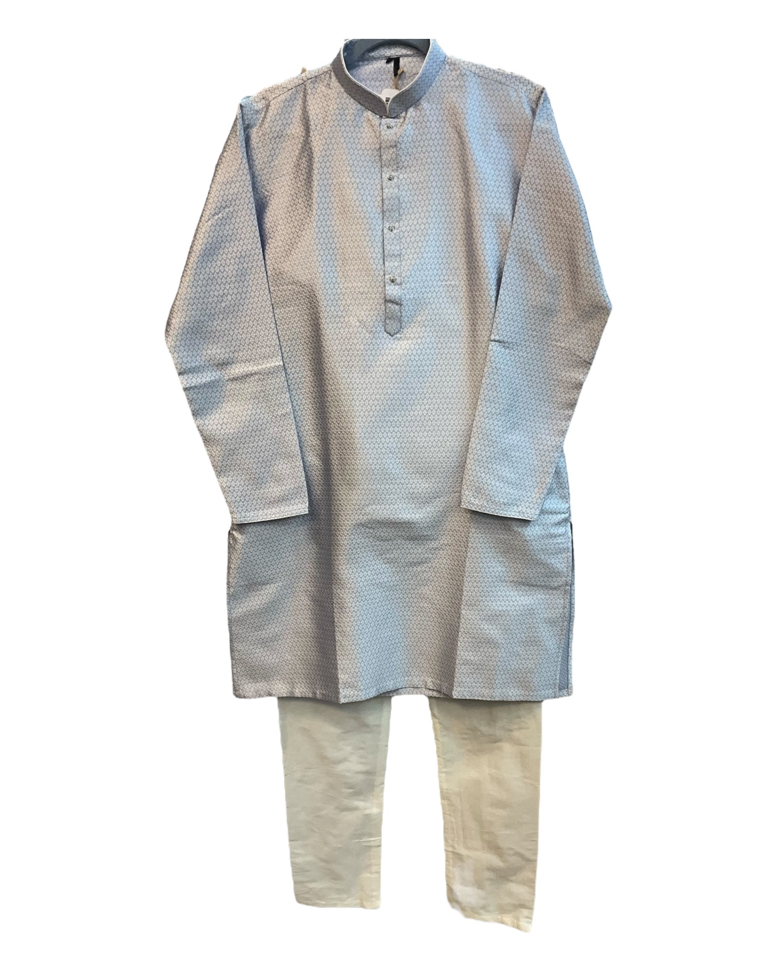 Silver Grey - Banarasi Handloom Brocade Mens Indian Kurta set - UK Stock - Weddings / Walimas , Sangeet, Diwali, Eid, Mehndi / Henna - VEE1642 KJ