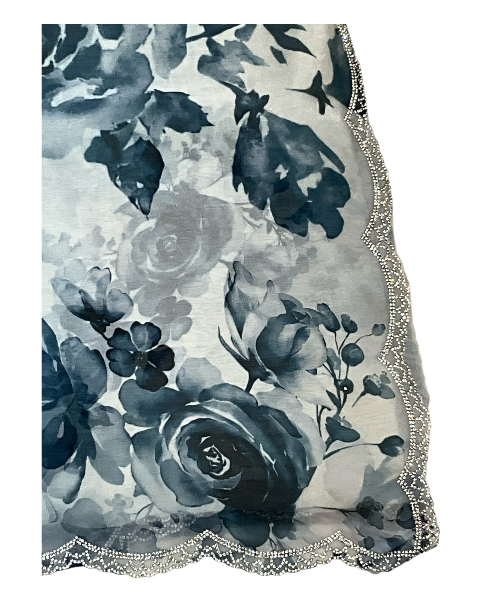 Teal Floral - Classic Satin Crepe Saree with Stone Work and Blouse Piece - UK stock - 24hr Dispatch - RS2536 VR